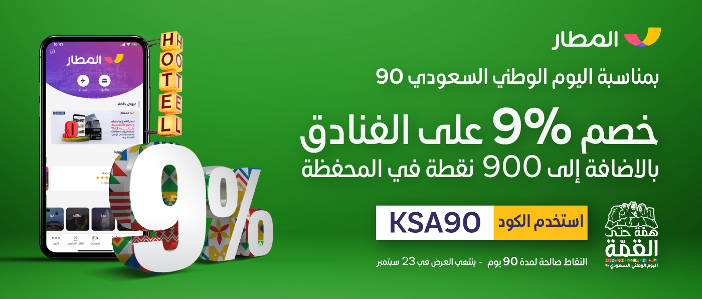 احتفالاً باليوم الوطني السعودي 90، خصم 9% على الفنادق + 900 نقطة في المحفظة