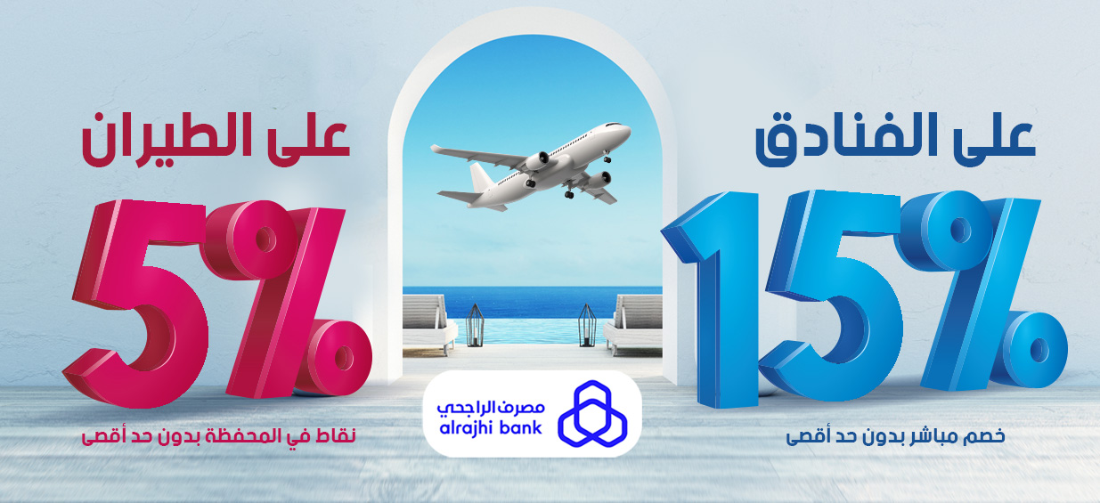 15% خصم على الفنادق & 5% نقاط في المحفظة على الطيران لحاملي بطاقات الراجحي