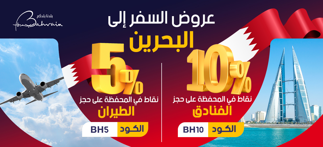 - 5% نقاط في المحفظة لكل حجز طيران إلى البحرين بالكود BH5