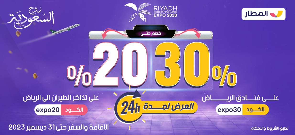 خصم يصل حتى 20% على حجوزات الطيران إلى الرياض ( 10% خصم مباشر +10% كاش باك) باستخدام كود Expo20