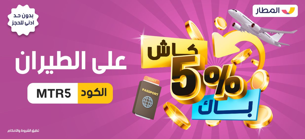 5% نقاط في المحفظة لكل حجز طيران بالكود MTR5