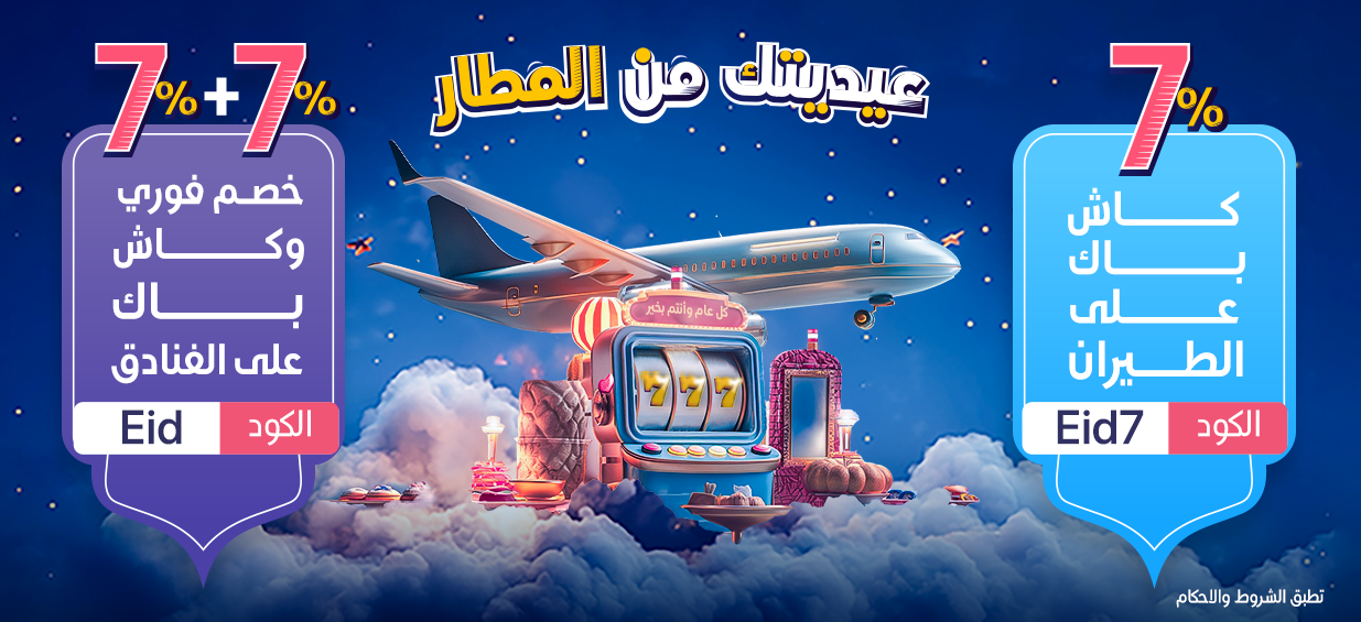 احصل على 7% كاش باك كنقاط في محفظة العميل على جميع حجوزات الطيران باستخدام الكود