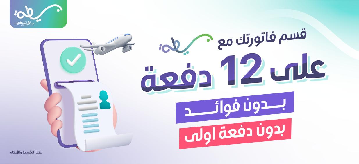 قسم قيمة حجزك على ١٢ شهر بدون دفعة أولى وبدون فوائد باستخدام بسيطة.