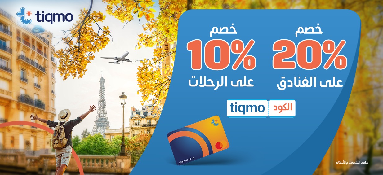 خصم مباشر 10%على حجوزات الطيران لحاملي بطاقة تكمو ماستركارد البلاتينية باستخدام كود Tiqmo .