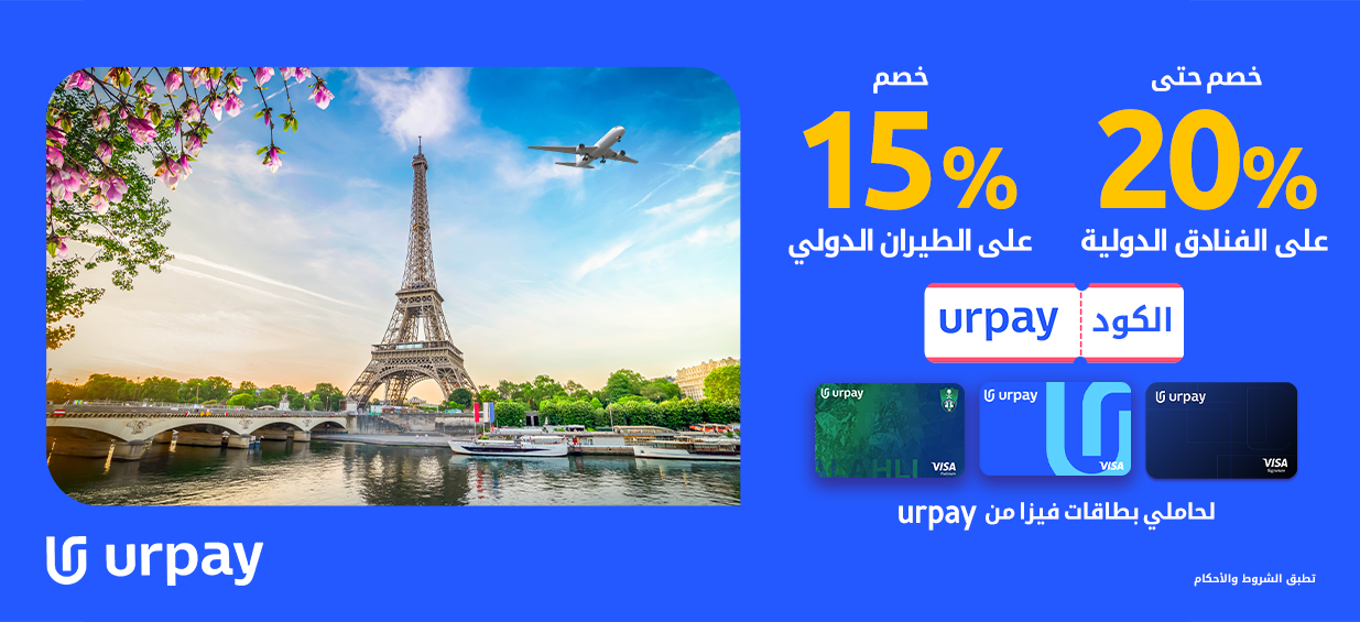 خصم مباشر 15% على حجوزات الطيران الدولية لجميع حاملي بطاقات visa من urpay باستخدام كود urpay.