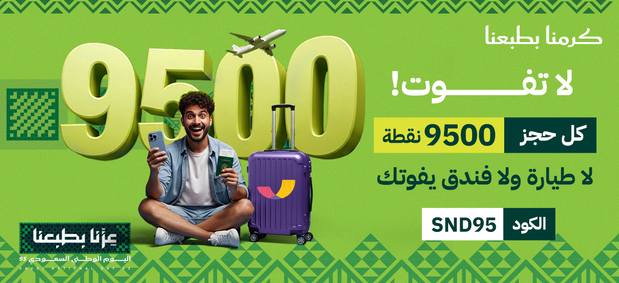 9500 نقطة في المحفظة على أي حجز فنادق أو طيران باستخدام الكود SND95
