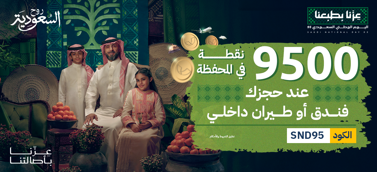 9,500 نقطة على جميع الحجوزات الداخلية للفنادق والطيران