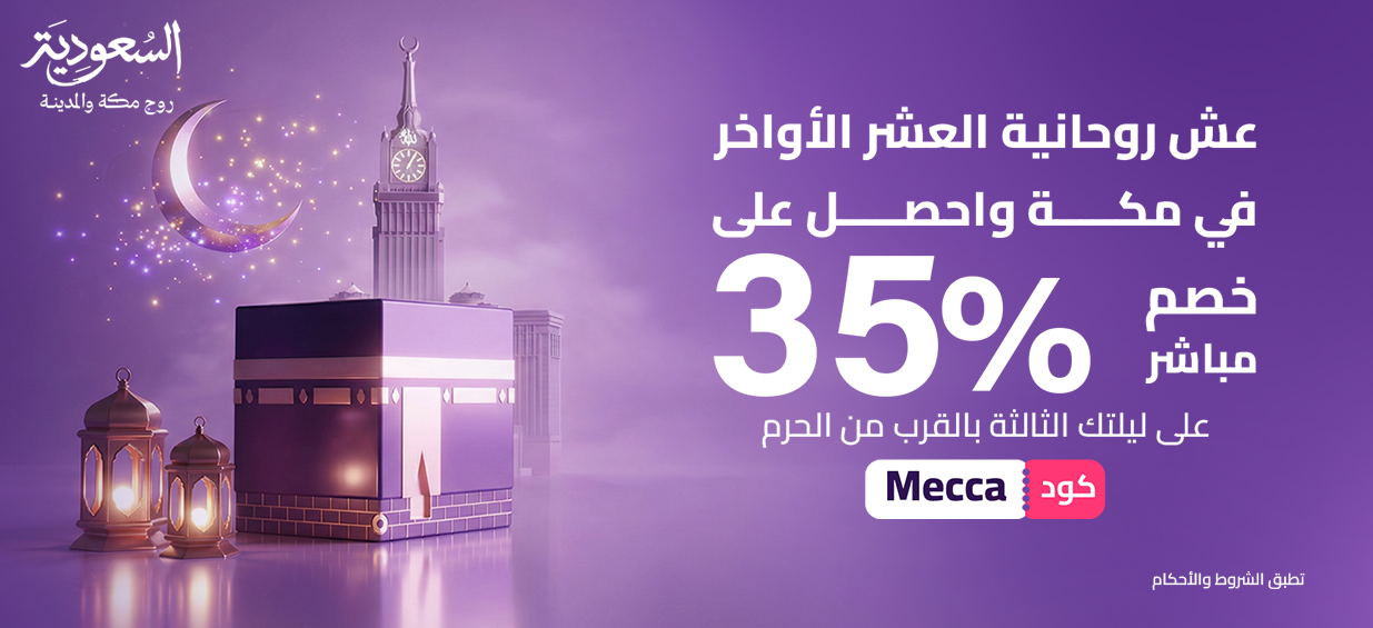 عند حجز 3 ليالي في جميع فنادق مكة باستخدام الكود