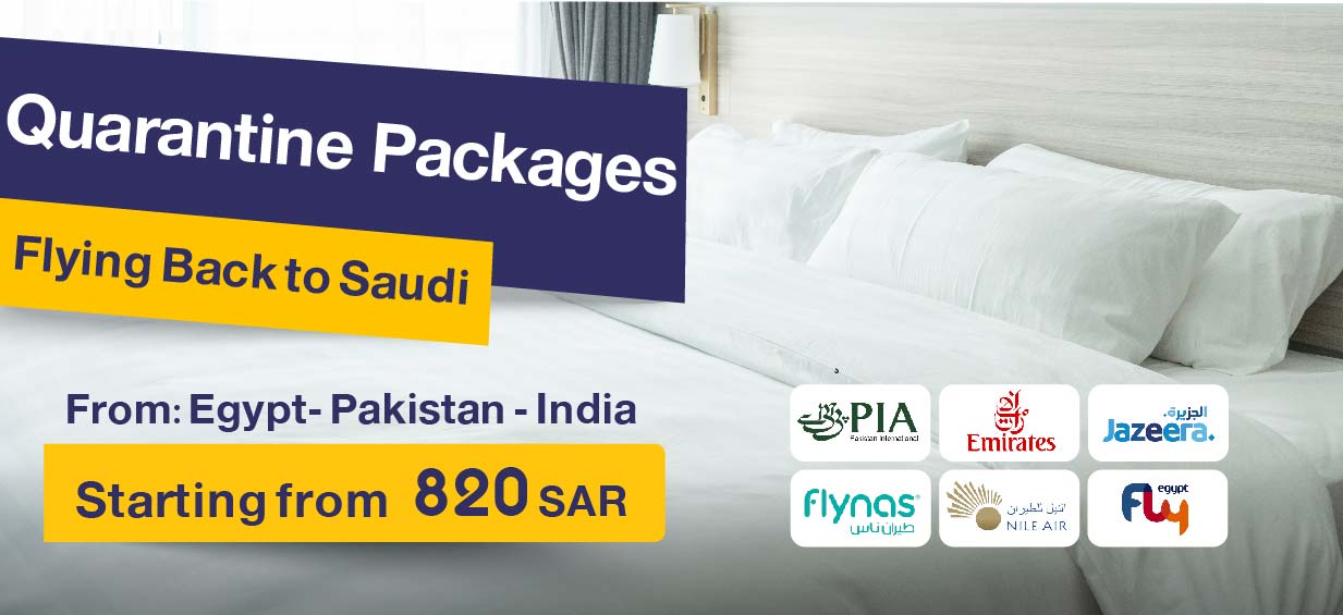 for traveller on Fly Egypt from Egypt to Saudi get your quarantine package in Saudi Arabia (Jeddah, Riyadh, Dammam, Hail and Yanbu ) starting from 870 SAR Book Now