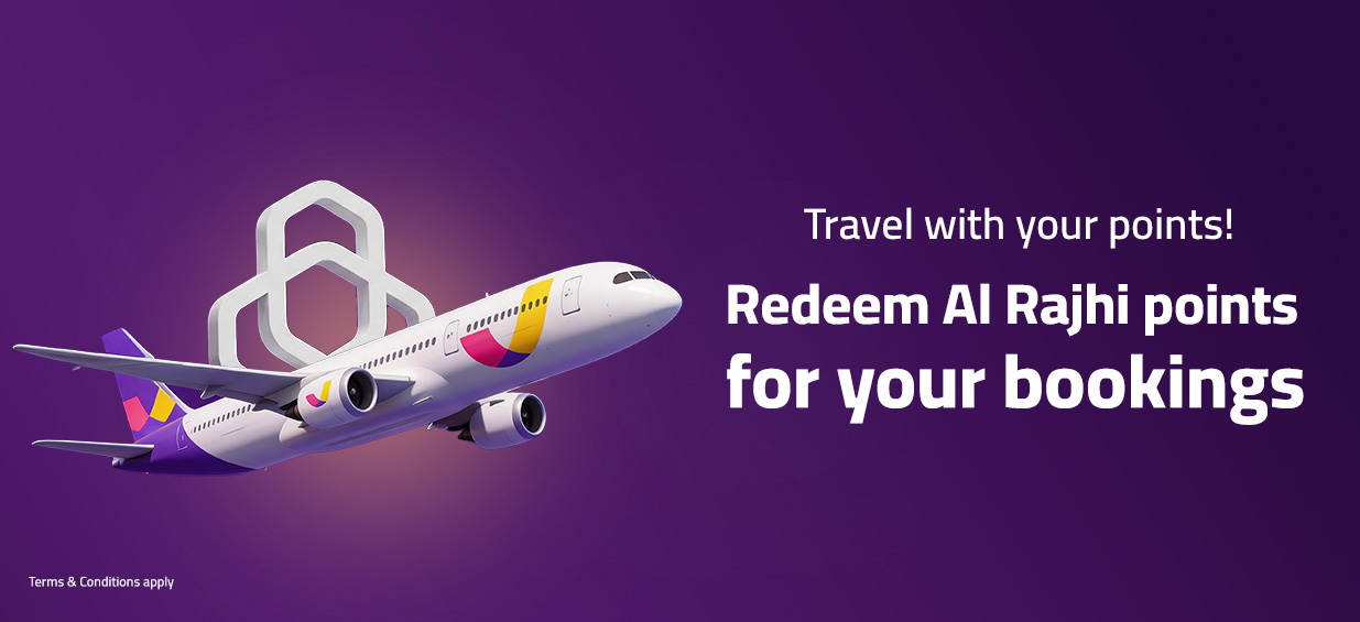Book hotels Or flights & pay with Mokafa'a alrajhi