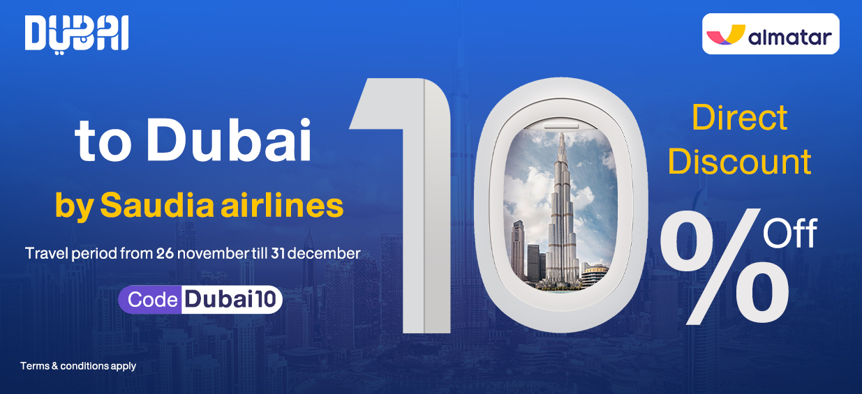 10% instant discont to Dubai through Saudia using code “Dubai10”.