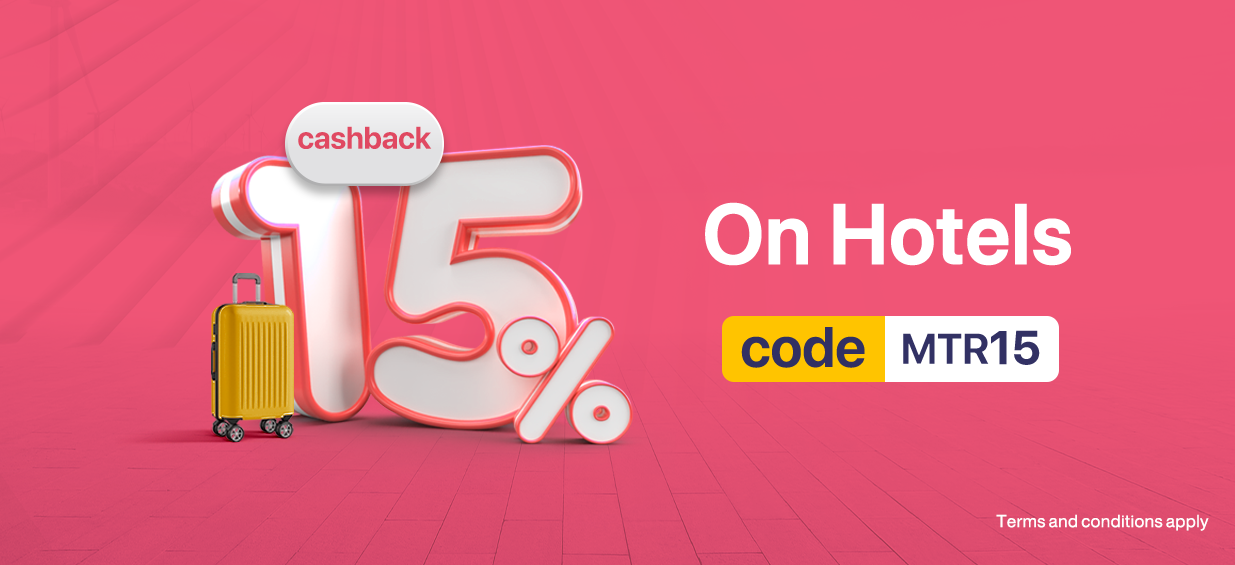 Get 15% Cashback as points in your wallet on all hotel reservations using code MTR15