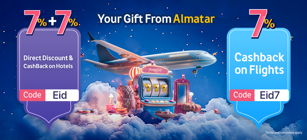Get 7% cashback as points in your wallet on all flights reservations using code Eid7