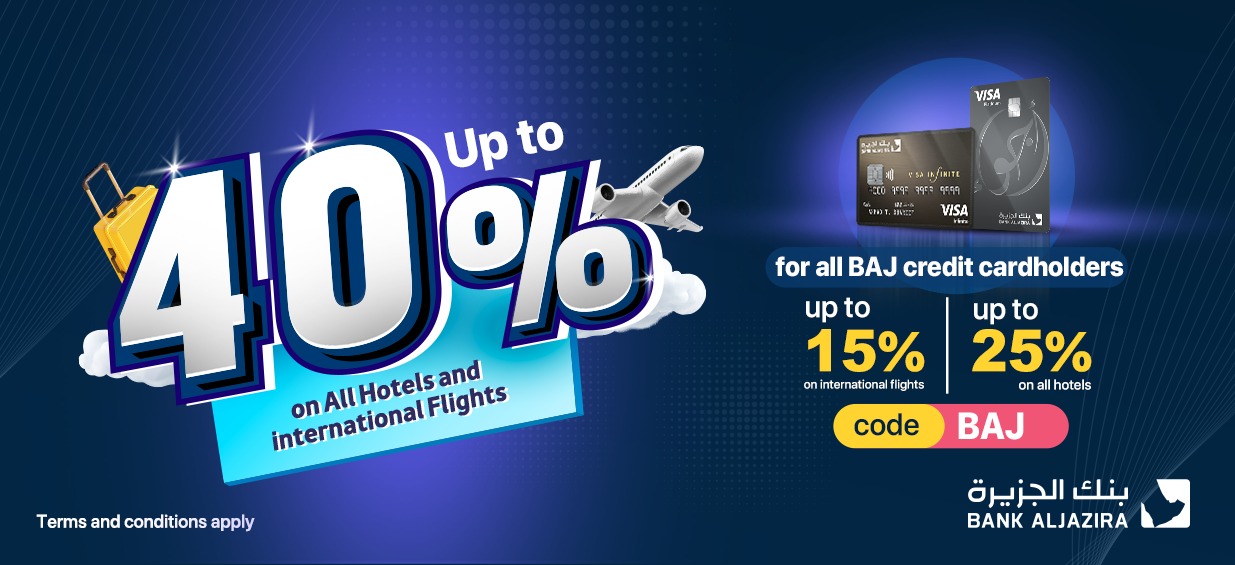 Bank Al Jazira and Almatar app have the right to deduct the discount value or close the account for any party that is seeking fraud or illegal profit and on reservations in which any violation of the aforementioned terms and conditions is proven without any responsibility.