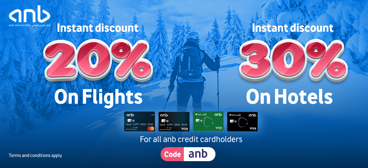 Get 20% direct discount on all flight reservations for all ANB credit cardholders using code "ANB”.