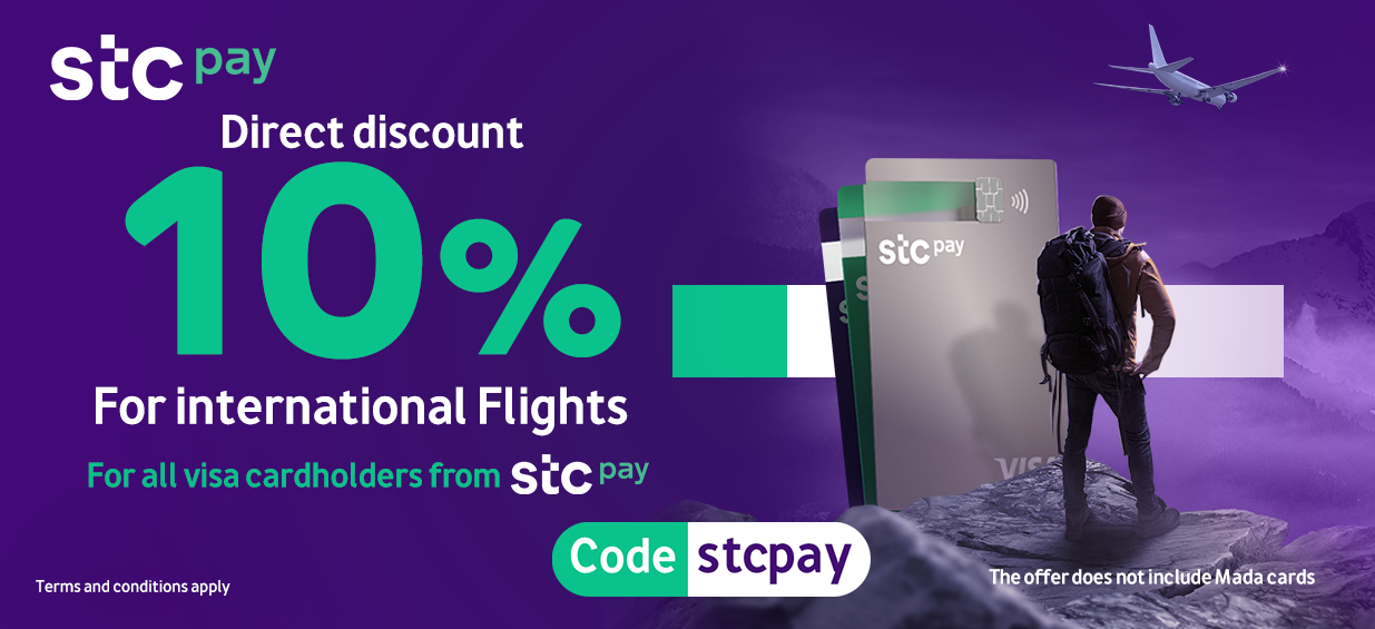 10% direct discount on international flight reservations for visa cardholders from stcpay using code " stcpay