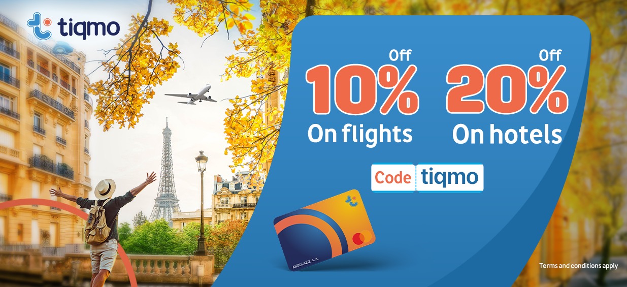 10% direct discount on flights for Tiqmo platinum card using code " Tiqmo”