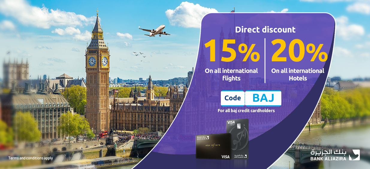 20% direct discount on international hotels for all BAJ credit cardholders using code "BAJ ”.