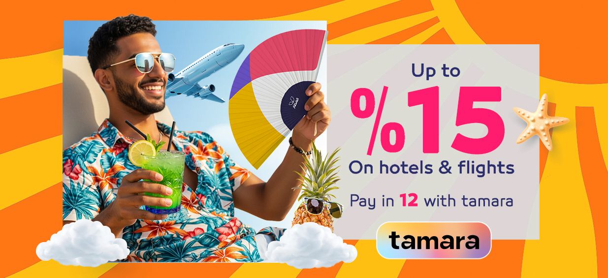 up to 15% Off on hotels and flights & pay 12 installments with Tamara
