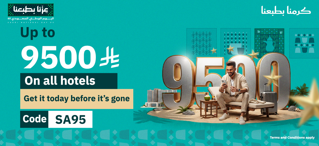 Get up to 9,500 SAR on all hotels reservations using code (SA95)