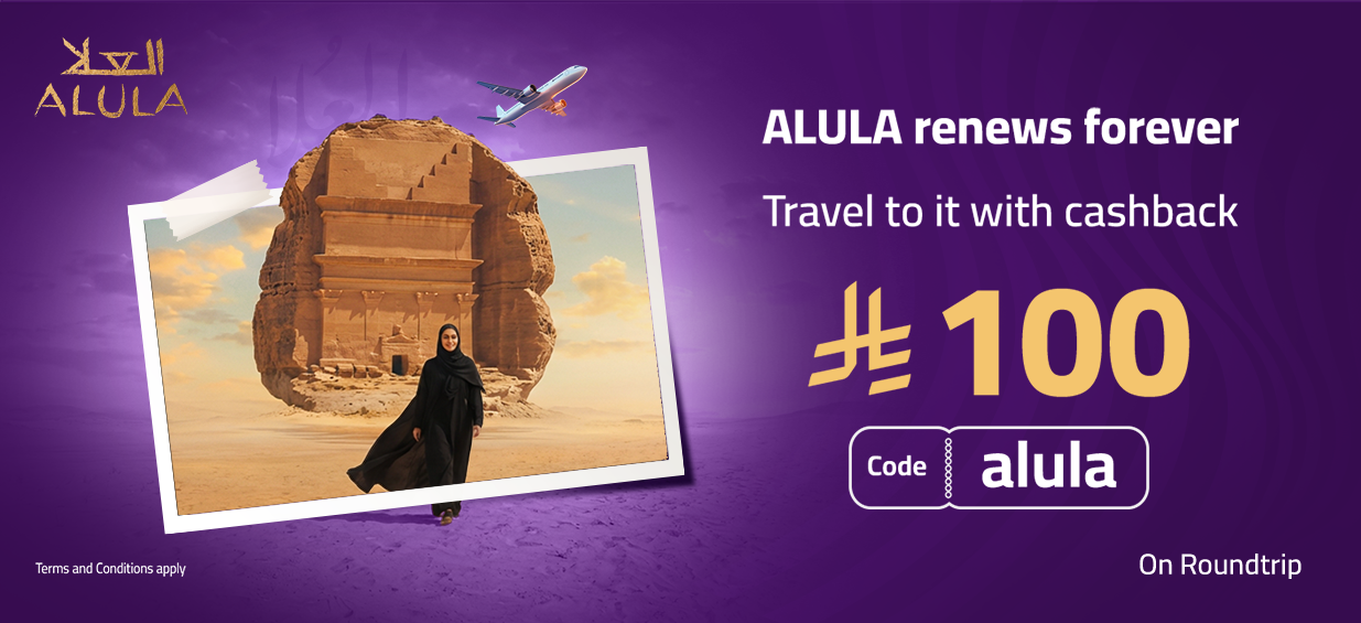 (credited as wallet points) on domestic flight bookings to AlUla using the code: